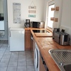 Kühlschrank, Geschirrspüler, Geschirreinrichtung, Elektroherd, Tiefkühlfach, Mikrowelle, Wasserkocher, Kaffeemaschine, Toaster, Besteck, Gläser