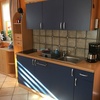 Kühlschrank, Geschirreinrichtung, Elektroherd, Tiefkühlfach, Mikrowelle, Wasserkocher, Kaffeemaschine, Toaster, Besteck, Gläser