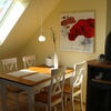 Im 2010 erbauten 3-Familienhaus erreicht man über einen separaten Eingang die gemütliche Ferienwohnung im 1. Stock. Die Wohnung hat 70 m² zzgl. großem Südbalkon Hier ist Platz für 4 Personen + evtl..Kleinkind und sie besteht aus 1 großen Schlafzimmer mit Doppelbett, 1 geräumigen Schlafzimmer mit Einzelbetten . Der offene Wohn-Essbereich mit Kamin und Einbauküche und das helle, moderne Bad mit Dusche und Wanne laden zum Wohlfühlen ein. Eine Holztreppe führt zum Spitzboden für weitere Abstellmöglichkeit. Auf dem Grundstück befinden sich der eigene Parkplatz, ein Holzhaus mit 2 Fahrrädern zur kostenfreien Nutzung und eine eigene Rasenfläche mit Grillplatz. Alle Räume haben eine Erdwärme gespeiste Fußbodenheizung. Fenster und Balkontüren haben elektrische Rolläden. Küche: Ceranfeld, Backofen, Dunstabzug, Mikrowelle, Kühlschrank mit Gefrierteil, Geschirrspüler, Toaster, Kaffeemaschine, Wasserkocher, Mixer, reichlich Geschirr, Gläser, Besteck, Gewürze. Für Kleinstkinder steht ein Hochstuhl zur kostenlosen Verfügung.