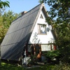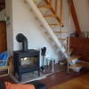 ("Finnhütte" oder "Nurdach-Haus") mit ca. 80 qm, Einrichtung überwiegend Massivholz-Möbel, individuell für den Eigenbedarf nach unserem Geschmack zusammengestellt (nicht steriler Pressspan vom Bauträger), Kaminofen, Gas-Zentral-Heizung