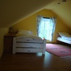 Unterm Dach mit sehr viel gemütlicher Dachschräge ist das Kinderzimmer mit 3 Betten.