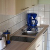Geschirreinrichtung, Elektroherd, Tiefkühlfach, Wasserkocher, Kaffeemaschine, Toaster, Besteck, Gläser