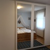 Durch die Eingangstür gelangen Sie in einen kleinen Flur mit Garderobe. Von dort geht das geräumige Schlafzimmer (ca. 20 qm), dass mit einem Doppelbett und einem großem Schrank ausgestattet ist, ab.