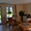 Das Wohnzimmer ist ca. 24 qm groß. Hier befindet sich ein großer Flachbild-Fernseher mit Sat-TV, Radio und CD-Player. Neben einem Couchbereich mit großer gemütlicher Sitzecke und einem Couchtisch gibt es einen separaten Esstisch.