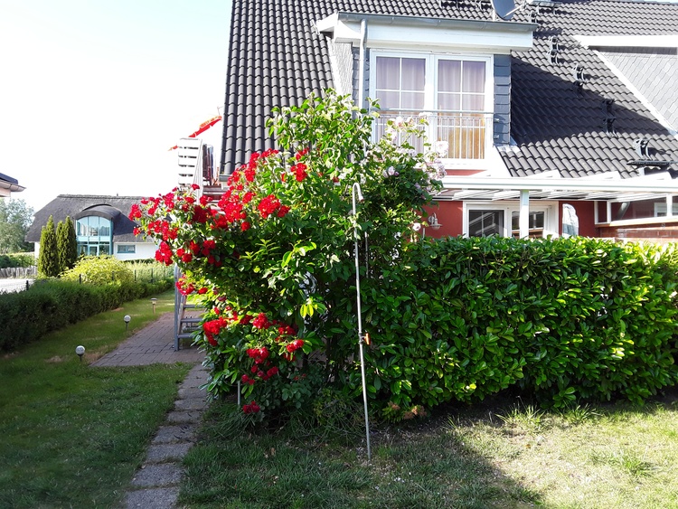 Cerankochfeld, Heißluftherd, Kaffeemaschine, Mikrowelle, Geschirrspüler und Esstisch fügen sich in das Wohnbild ein. Das moderne Bad besitzt eine Fußbodenheizung, WC, Dusche, Handtuchtrockner und Waschbecken. Die Wohnung bietet 3 Personen oder 2 Pers. mit 1 Kind ausreichend Platz. Für 1 Kind werden Hochstuhl und Kinderbettchen bis 3 Jahre kostenlos gestellt. Der Garten wird von beiden Fewo genutzt. Das Haus und der Parkplatz ist mit einem Zaun eingefriedet. Die Fewo ist nicht geeignet für Behinderte mit und ohne Pflegestufe. Die Gemeinde erhebt seit15.6.22 eine Kurabgabe von 2 € pro Person und Tag