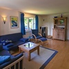 Großzügiges Wohnzimmer mit Parkett, Kaminofen, Telefon, Internet/WLAN, TV (öffentl.-rechtliche Sender), DVD, Radio, CD, kleine Bibliothek.