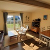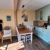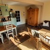 Die hochwertige Ausstattung der Küchenzeile beinhaltet einen Geschirrspüler, 2 Platten E-Herd, Backofen, Kühlschrank, Wasserkocher, Toaster und Kaffeemaschine. Über eine Holztreppe im Flur erreichen Sie die beiden gemütlichen Schlafzimmer im Obergeschoss. Das eine Schlafzimmer ist mit einem Doppelbett ausgestattet und das andere mit zwei Einzelbetten.